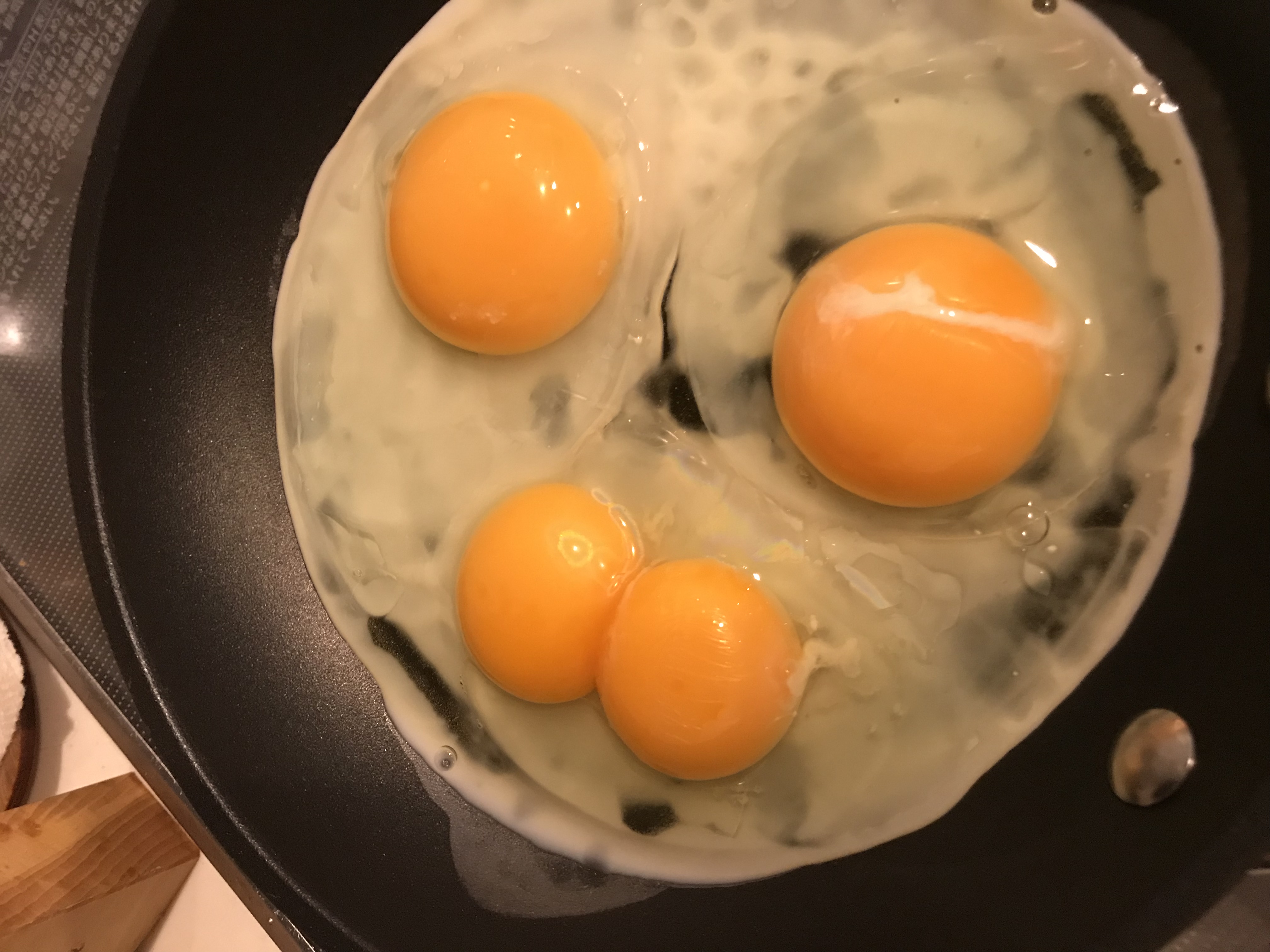 今朝、目玉焼きを焼こうと卵を割ったらなんと